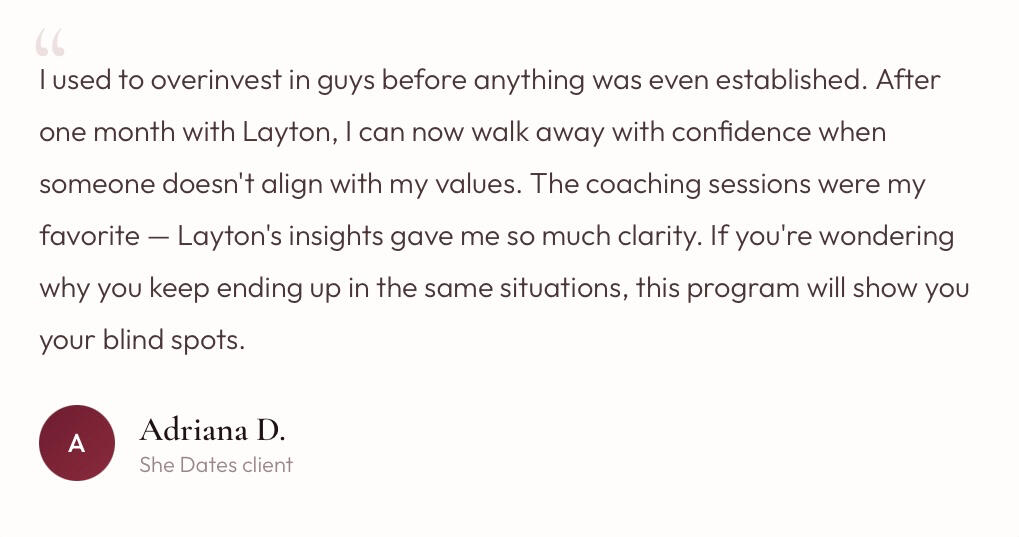 ✕ You're looking for quick tricks or "how to make him chase you" games✕ You're not willing to look at your own patterns and take responsibility✕ You're not ready to invest time, energy, or resources into changing your dating life